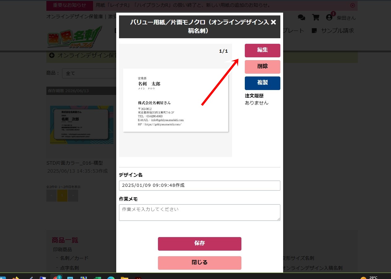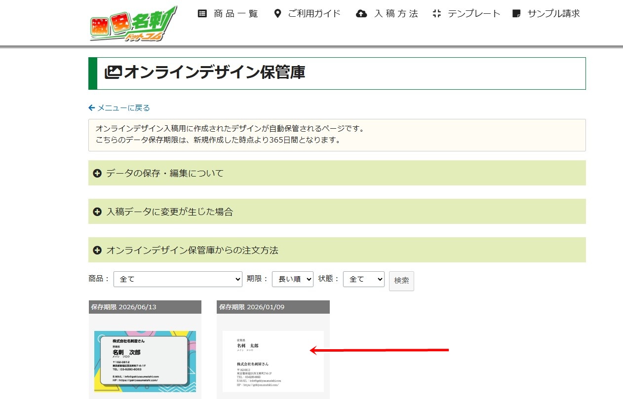 オンラインデザイン保管庫に保管されているデザインの注文方法をご説明します。