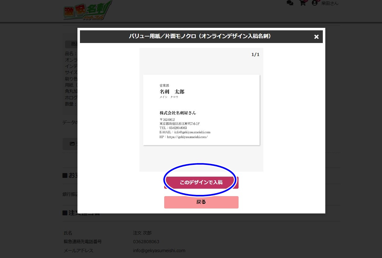 10.ご注文したいデザインを選択し、「このデザインで入稿」をクリック。