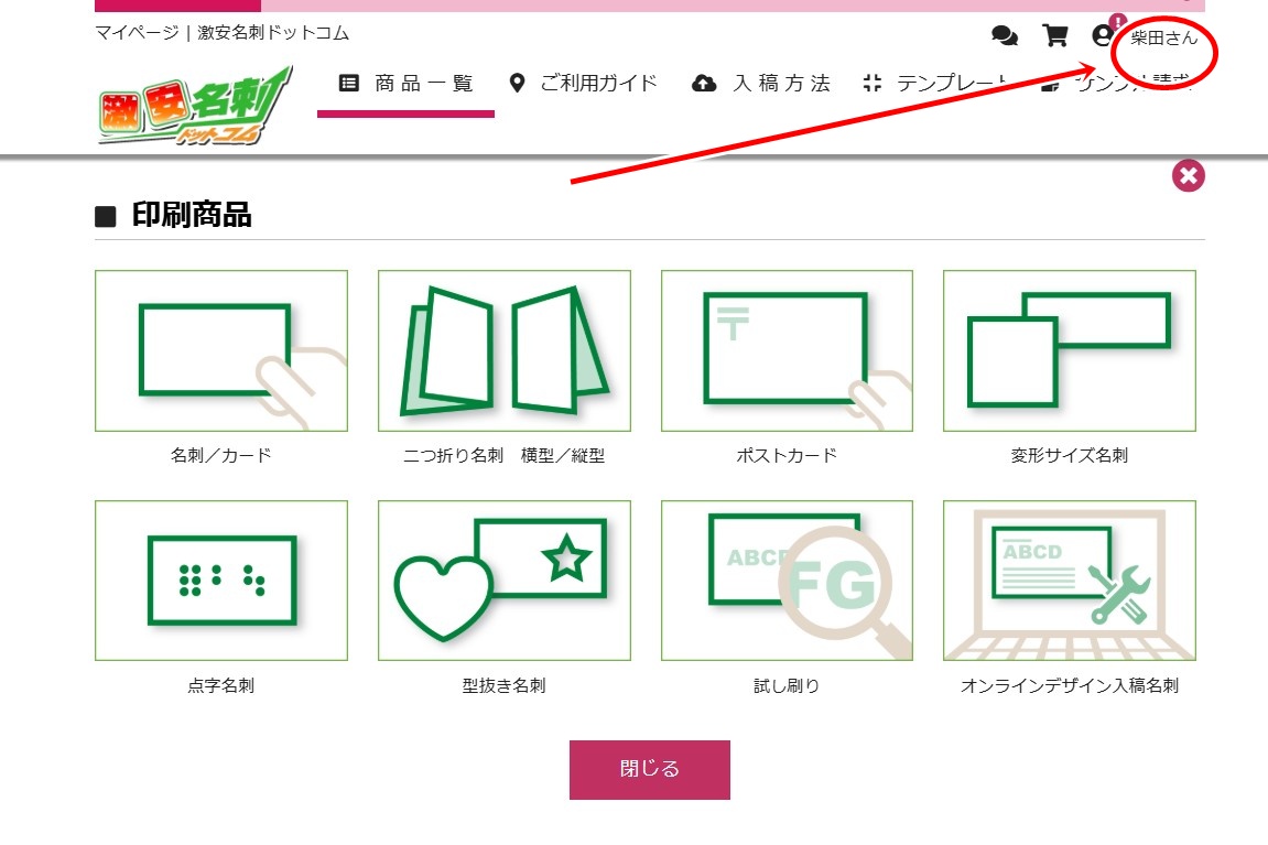 5-2.「その他の商品を選択する」を選択した場合、「商品一覧」が表示されますので「右上の氏名」をクリック。