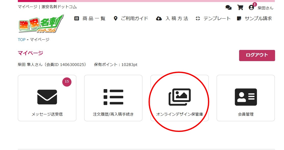 5-3.マイページが表示されますので、オンラインデザイン保管庫をクリックし、先程と同様の操作で必要分を追加していきます。